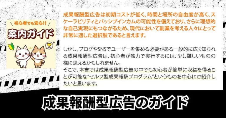 マニュアルの内容は、前述の通り「成果報酬型広告とセルフ型成果報酬プログラムの実践」、つまりアフィリエイトノウハウでした。
