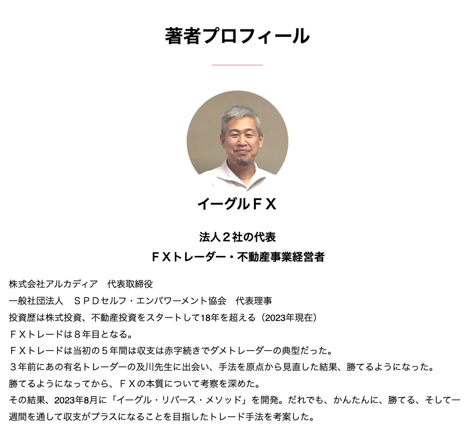LPで掲載されている著者「イーグルFX」のプロフィール写真