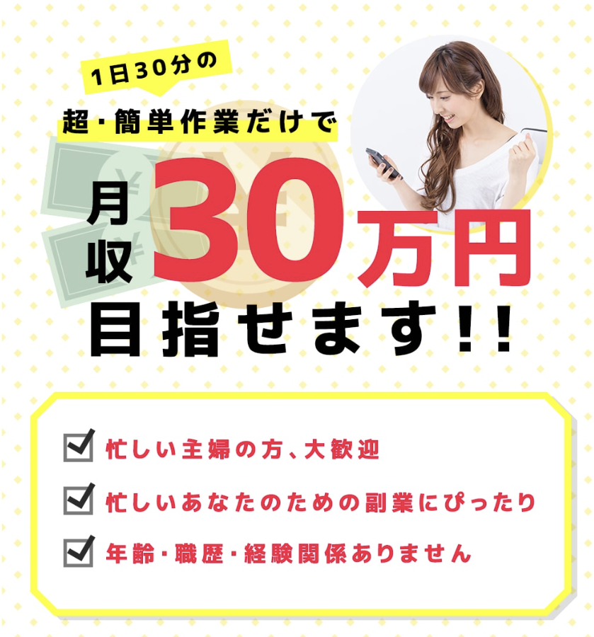 • 「毎月30万円」と謳っているが、稼ぎ方の具体的な説明がない