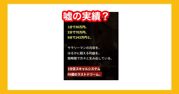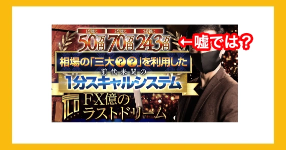 FX億のラストドリームが謳っている、「わずか1分で50万円〜」というのは、投資初心者の方が出した利益かもわかりません。