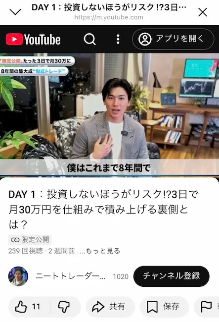 ニートトレーダー旬は、YouTubeの運営歴も短く、ここ最近活動を始めたようなので、