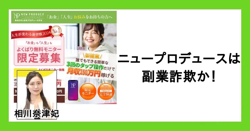 こんにちは、友作です。 今回は、今ネットやSNSで話題になっている相川奈津妃(あいかわ なつき)の「NEW PRODUCE(ニュープロデュース)」について、稼げるのか・詐欺... -