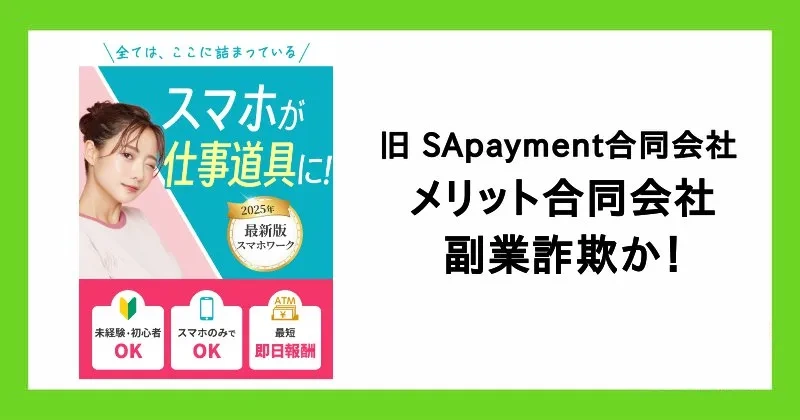 今回は、今ネットやSNSで話題になっている「メリット合同会社(旧 SApayment合同会社)」の副業について、実際に登録検証した結果から、実態や危険性を解説していきます... -
