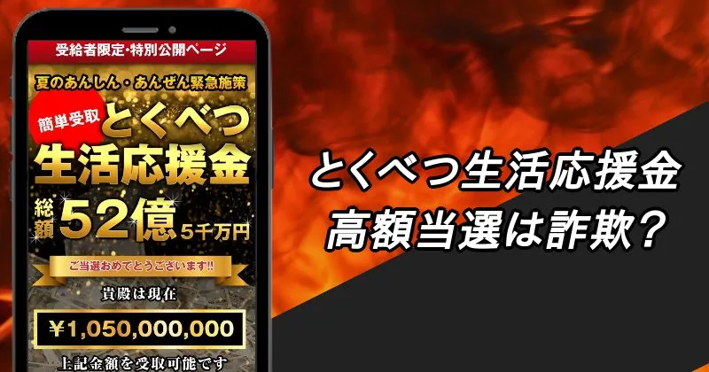 こんにちは。 この記事では、「とくべつ生活応援金総額52億円5千万円の当選SMS(ショートメール)は詐欺?」「10億5千万円もらえるってLINEがきたけど本当?」という疑... -