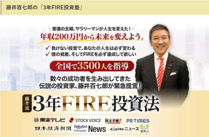 藤井百七郎と「藤井流3年FIRE投資塾」の口コミや評判も調査