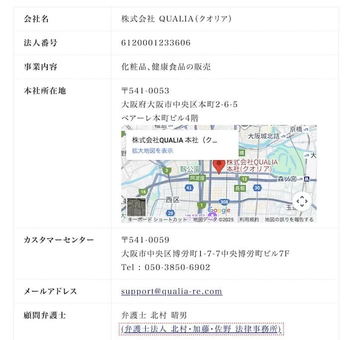 クオリア(QUALIA)が信頼できるネットビジネスなのかを判断するため、特商法(特定商取引法に基づく表記)を確認します。