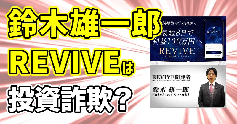 こんちには。今回は「鈴木雄一郎」の「REVIVE」という投資システムを調査しました。