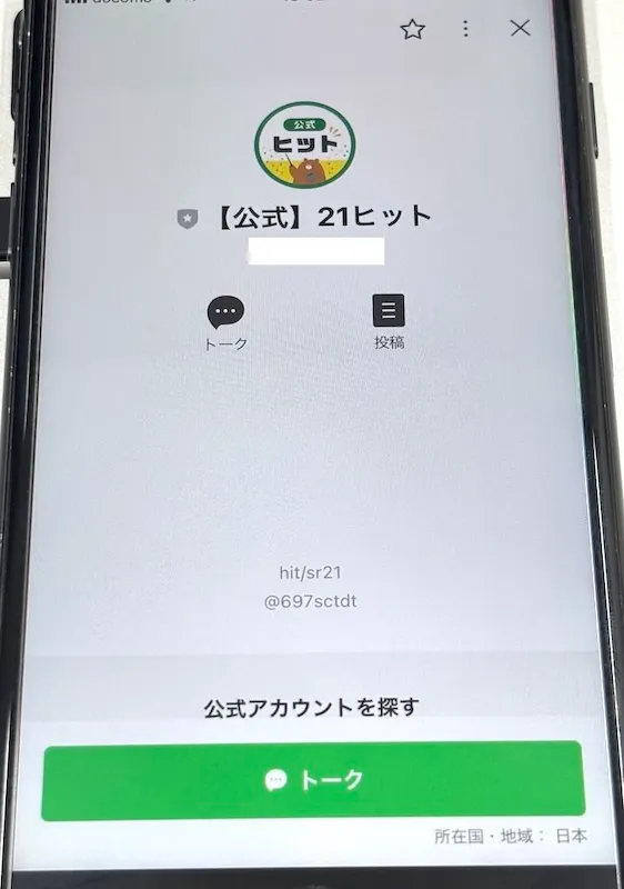登録後、LINEに「【公式】ヒット」というアカウントへ誘導されたため、登録してみました。