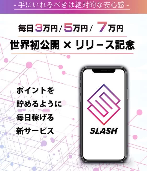 SLASHは「完全放置で毎日3万円〜7万円が稼げる」と謳っています。
