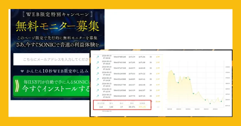 しかし、SONIC(ソニック)の場合は、稼げる根拠や実績がなく、何を根拠に勝てると謳っているのか全くわからない状態です。