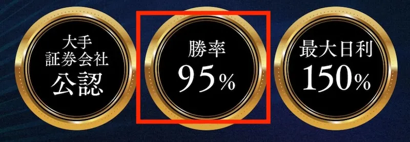 「大手証券会社公認」など意味わからないこと謳っていますが、証券会社が勝率95%のシステムを公認するわけがありません。