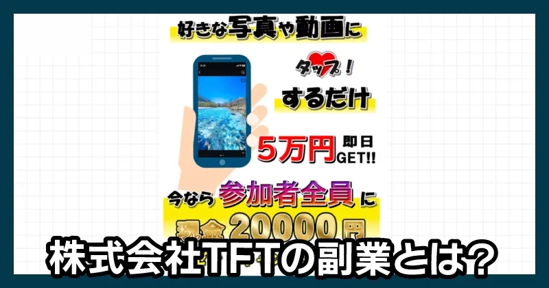 「好きな写真や動画をタップするだけで即日5万円が稼げる」という副業を案内している株式会社TFTですが、